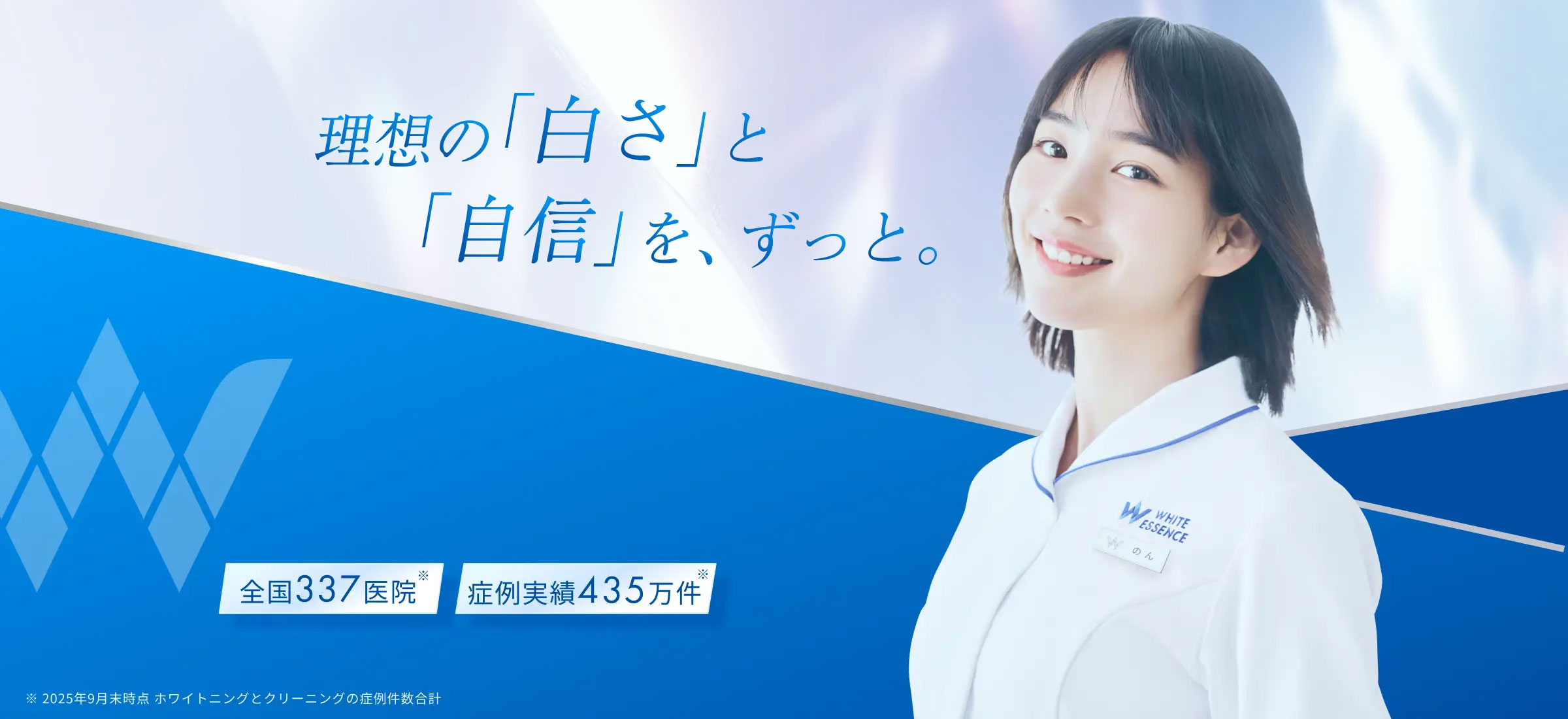 新ビジュアルでは、ホワイトエッセンスの歯科衛生士をイメージし、のんが実際にホワイトエッセンスの歯科衛生士の制服を着用し撮影されました。